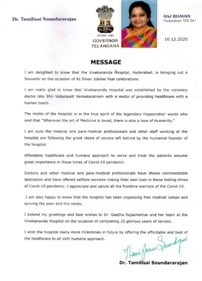 Appreciation from Governor of Telangana